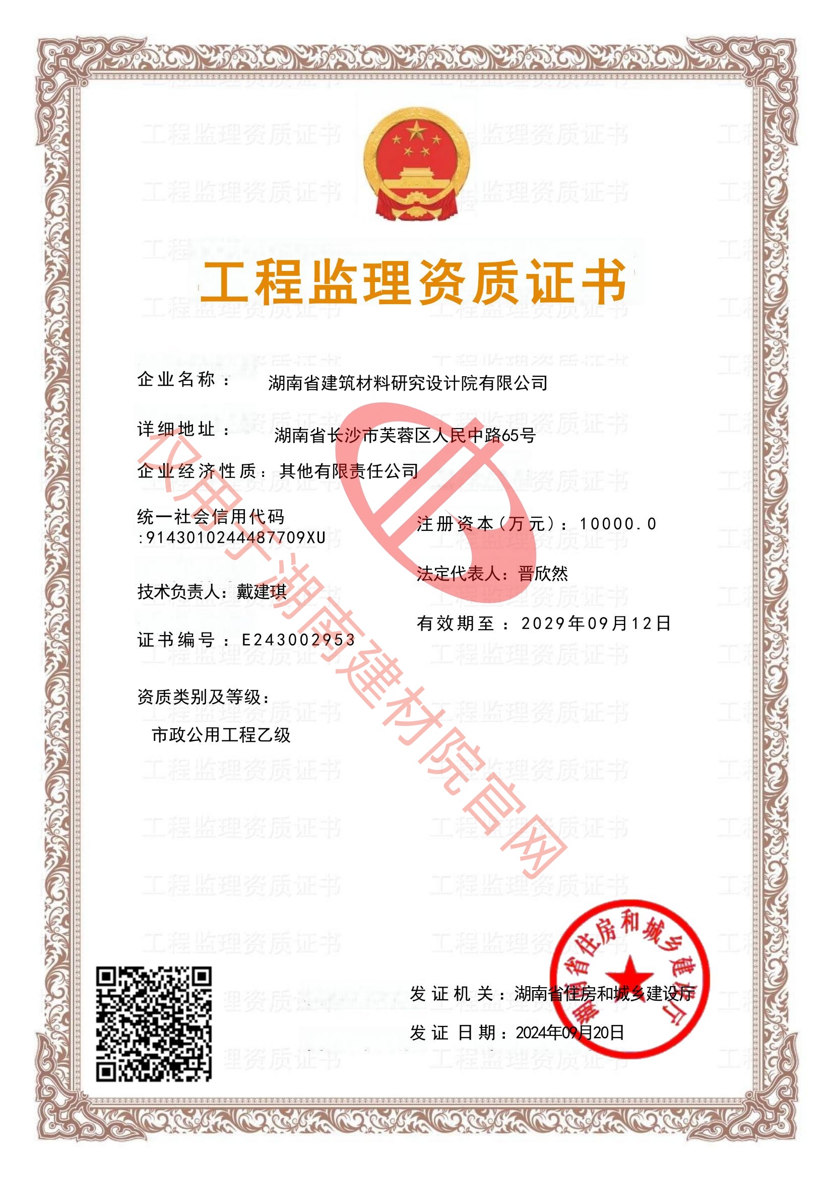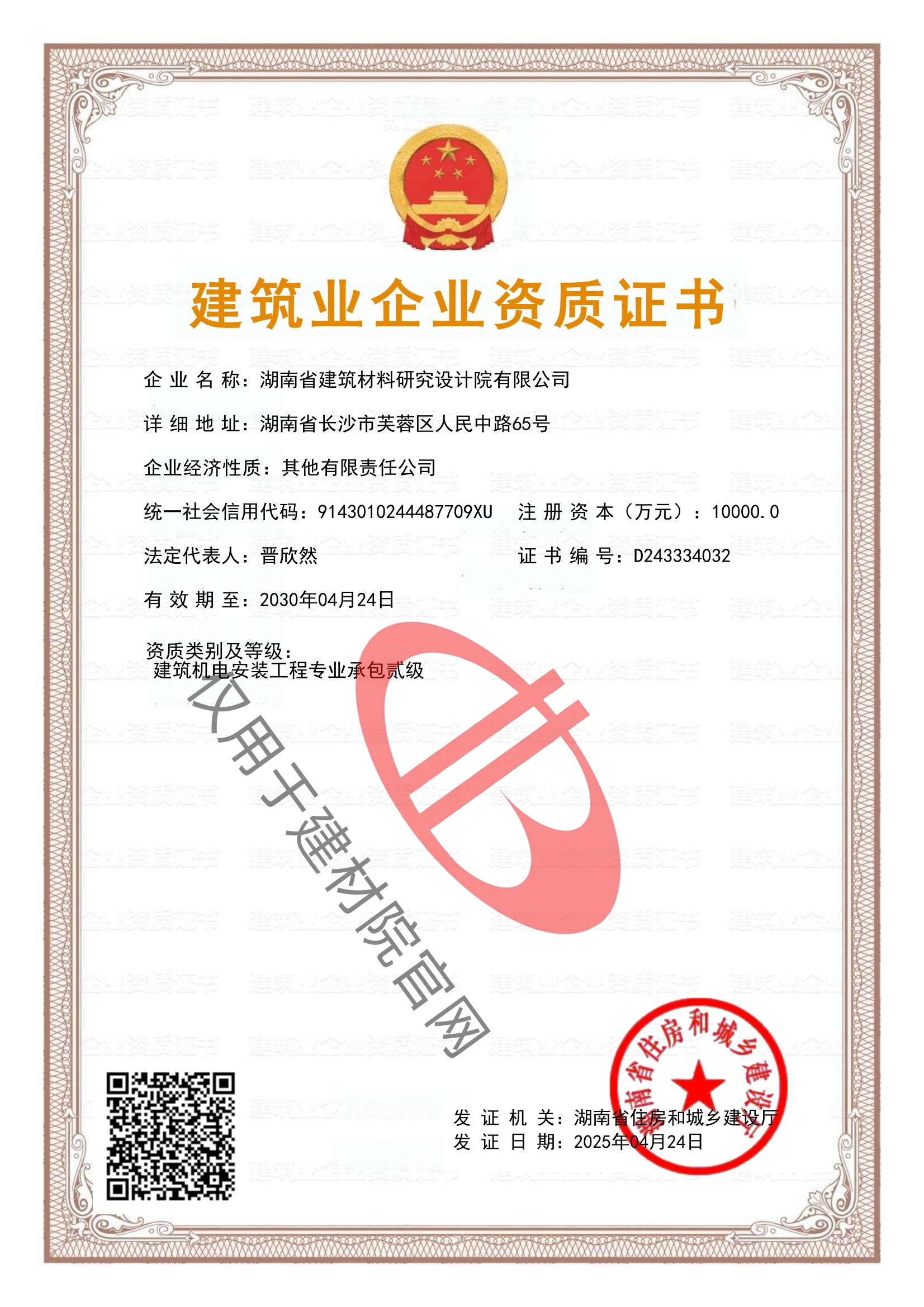 湖南省建筑材料研究設(shè)計院有限公司的前身為湖南省建筑材料研究設(shè)計院,成立于1958年,是1993年全國首批榮獲國家建材行業(yè)設(shè)計、工程總承包甲級資質(zhì)的四個科研設(shè)計單位之一。